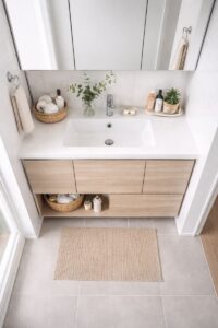 特に、洗面台が古くなっている場合は、周辺の内装も同時に傷んでいることが多く、洗面台だけを交換すると見た目のバランスが気になることがあります。